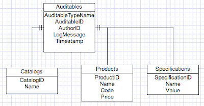 However, one work around is to query for the Audit Logs for the Catalog. Next, find all the Products of this Catalog and query for the audits for all these products. However, if we are to select top 50 audits for the catalog and its whole hierarchy, how many should we select here? And the problem gets even worse, when you have to repeat the above steps for Specifications and Specification Properties. When you have to take the latest 50 audit logs after you run a few queries, say 10, you have to take 50 audit logs for each of them. Because, the latest 50 results can be from a single query :-(